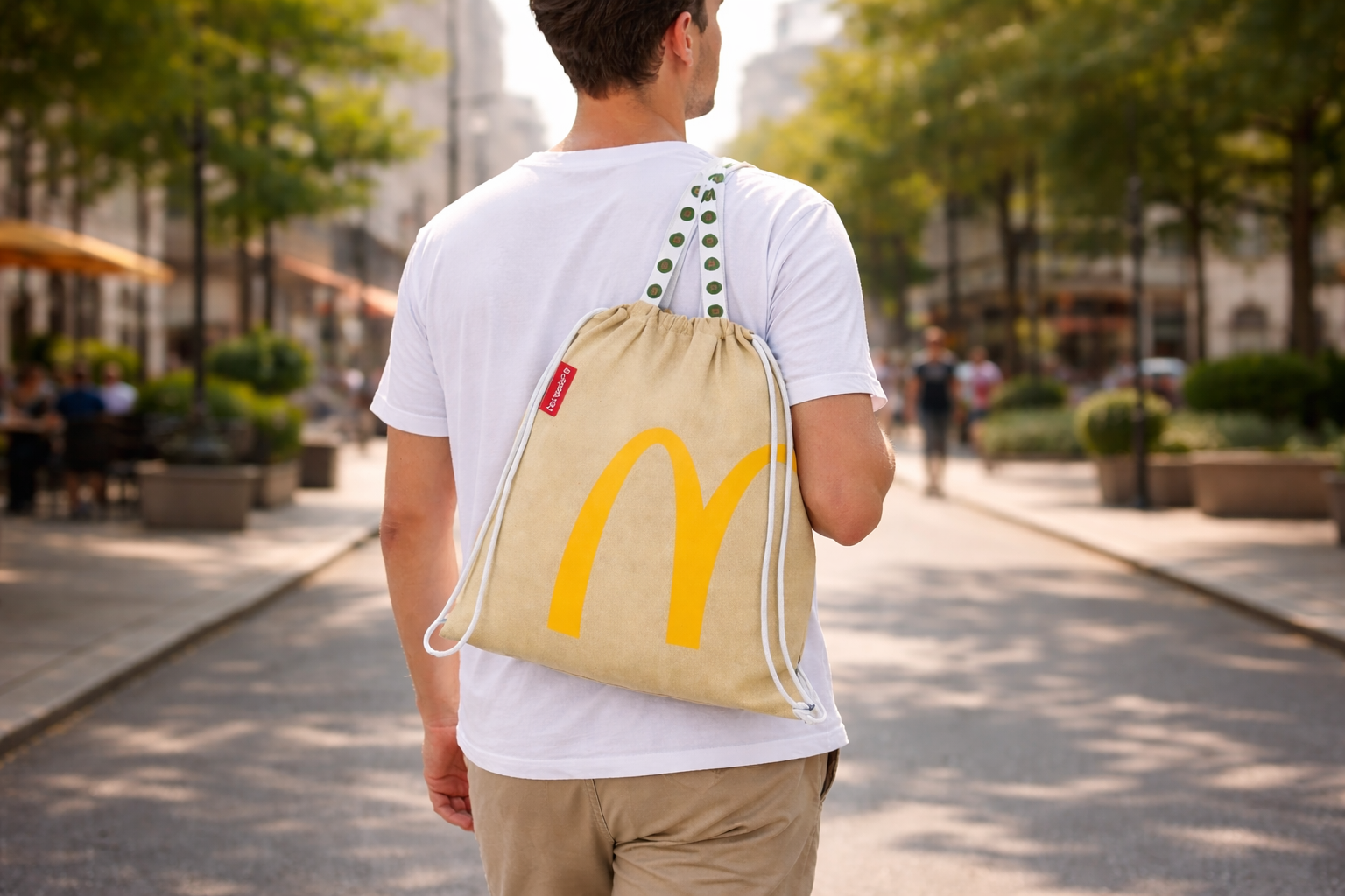 Bolsa con cordón para cualquier ocasión. Disponible para llevar como bolso y también como mochila.