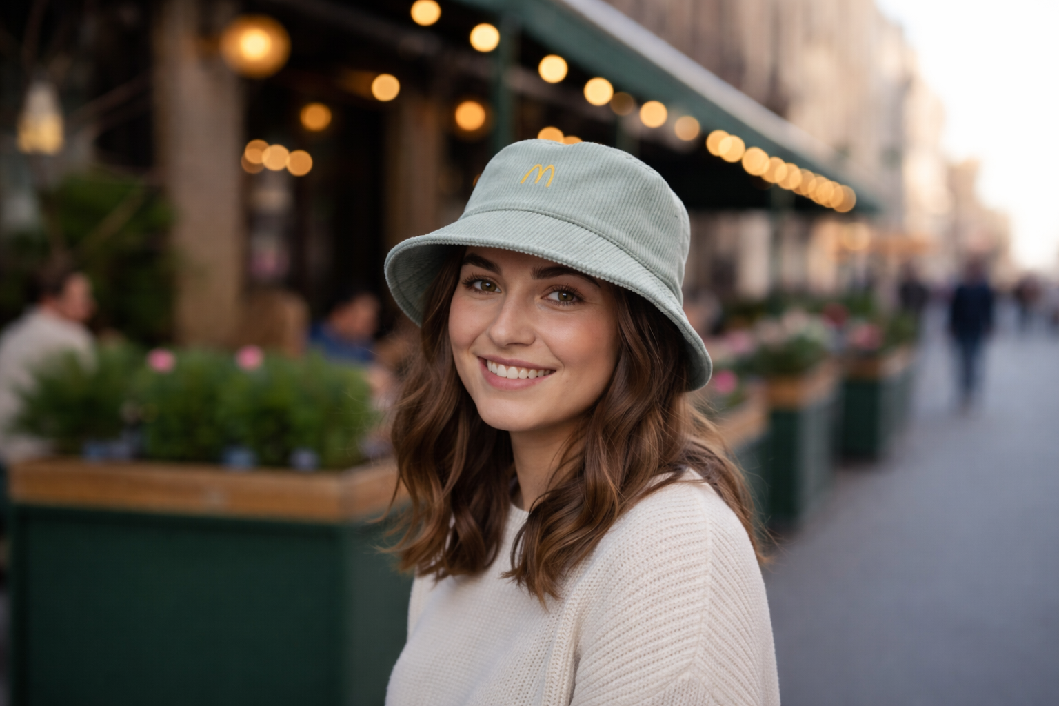 Gorro tipo bucket de color verde confeccionados en pana de algodón, con un diseño elegante y funcional. Incorporan logotipo bordado de 4,5 cm que aporta un acabado cuidado y distintivo. Son de talla única para adulto (58) y se presentan en bolsa de polietileno, lo que los convierte en una opción ideal tanto como complemento de moda como para acciones promocionales.