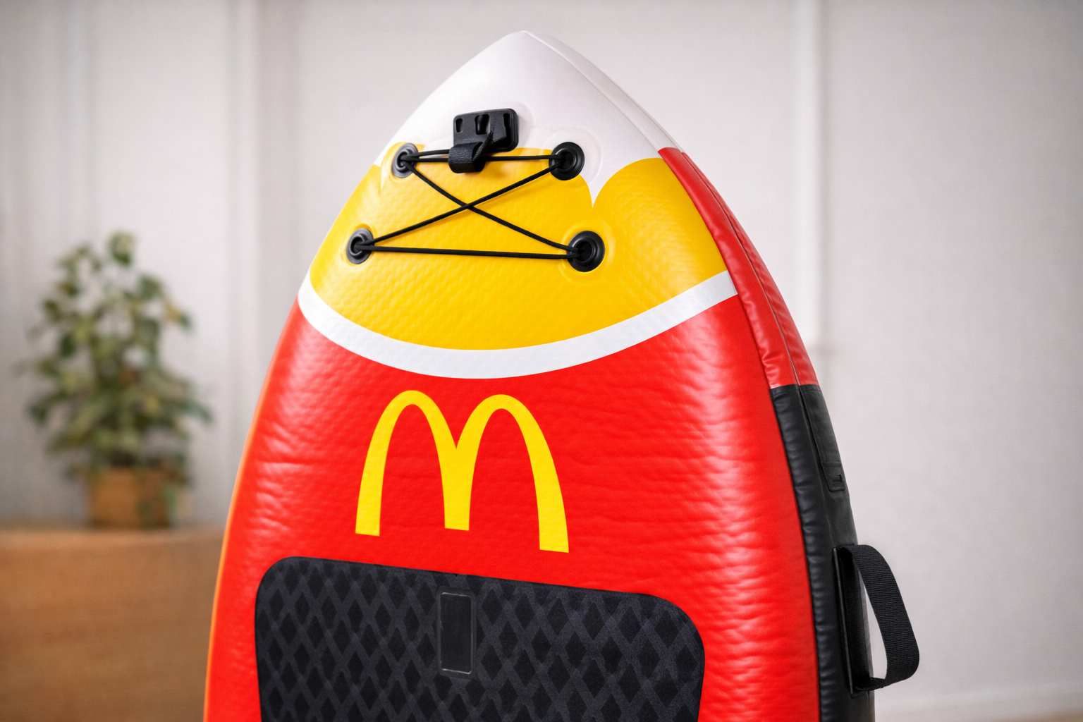 Tabla hinchable de remo, estable y rígida, perfecta para cualquier nivel de habilidad, desde principiantes hasta usuarios más experimentados. Su diseño hinchable facilita el transporte y almacenamiento, ofreciendo practicidad sin perder rendimiento en el agua. Presenta un llamativo color inspirado en Patatas McDonald’s, ideal para destacar en actividades promocionales o eventos especiales. El set incluye tabla de paddle surf y remo, proporcionando todo lo necesario para disfrutar de la experiencia desde el primer momento.