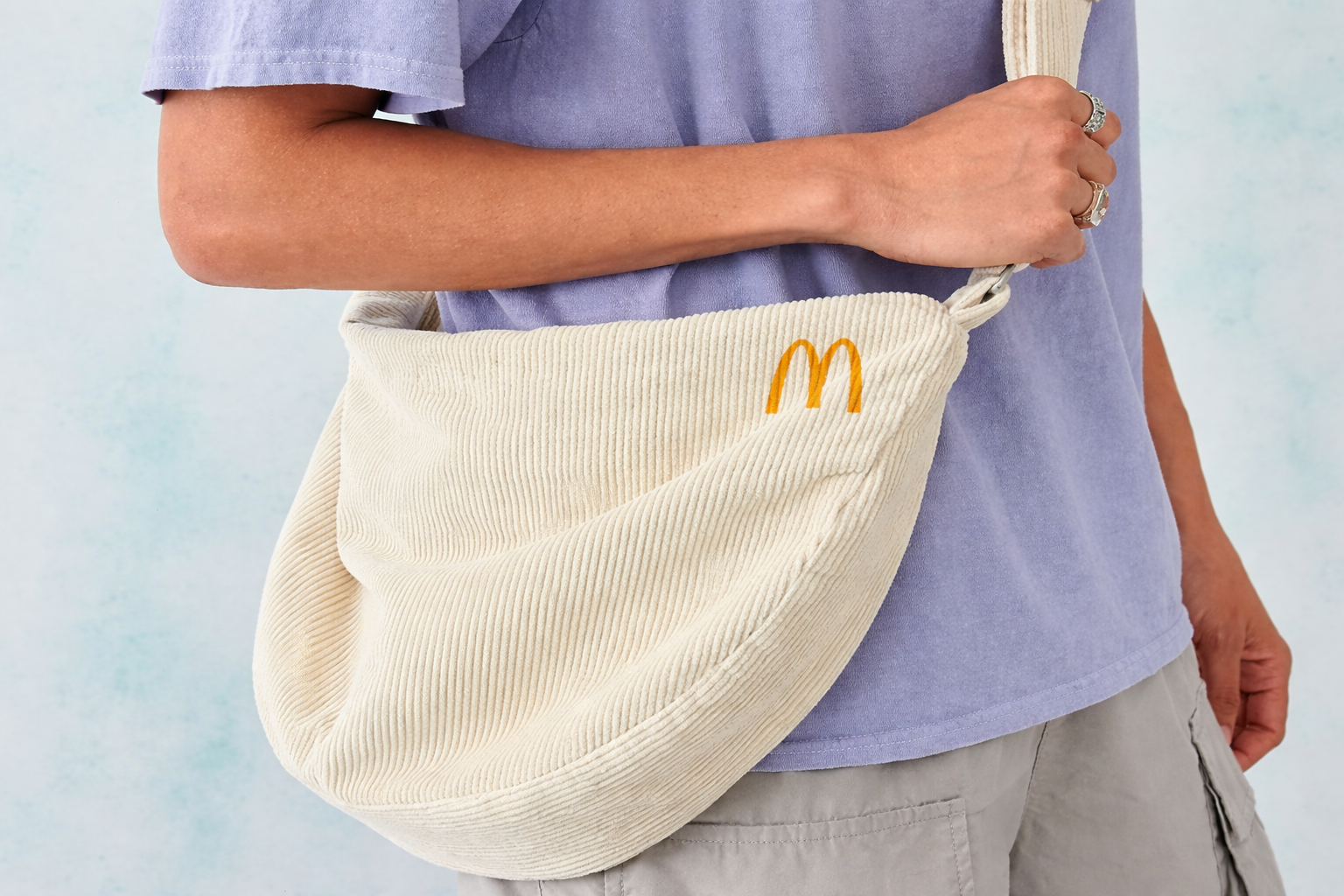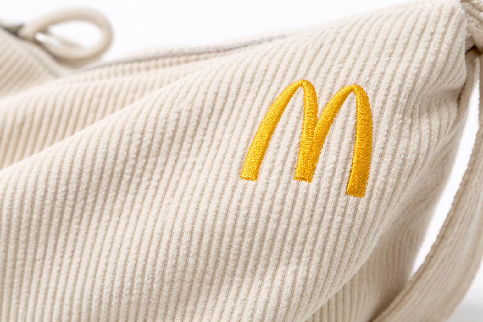 Presenta una estructura de pana con un único compartimento con cremallera, una amplia correa cruzada ajustable y un logotipo bordado en el exterior.