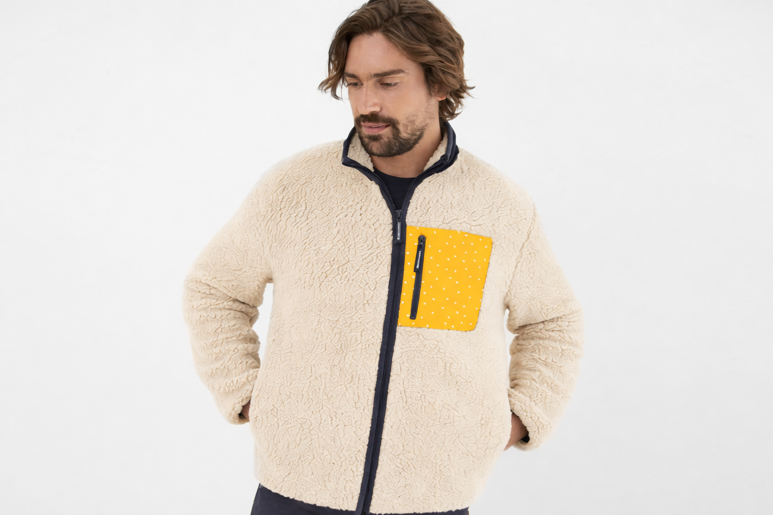 Esta chaqueta cuenta con un práctico bolsillo en el pecho y múltiples bolsillos para mayor comodidad. La cremallera negra invertida con tirador no tejido con logotipo personalizado añade un toque de exclusividad a esta versátil prenda. Disponible en la talla 32 (mediana), esta chaqueta beige con bolsillos de polialgodón impresos en dos colores garantiza tanto comodidad como estilo.