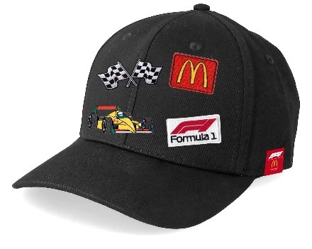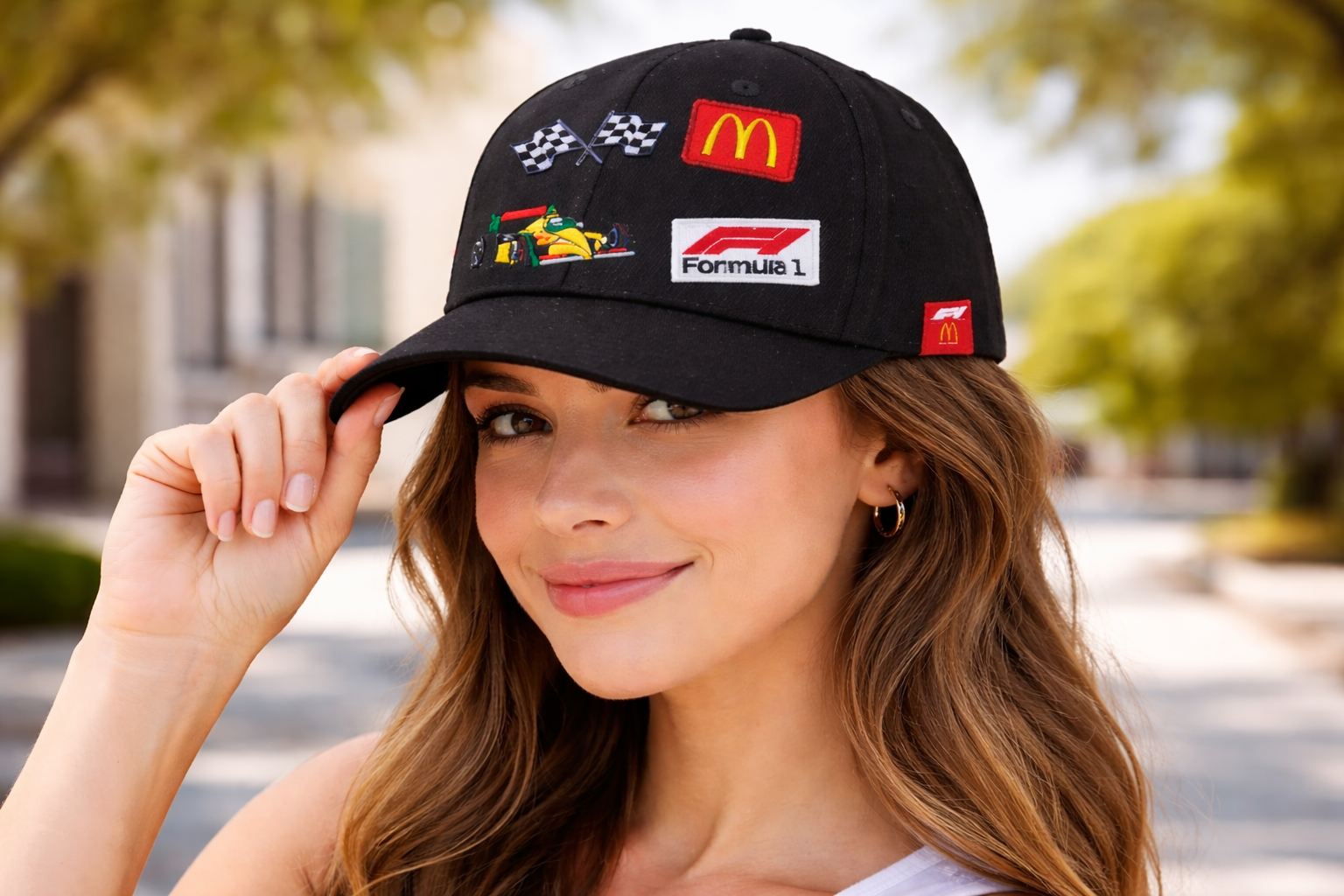 Gorra negra de 58–60 cm de diámetro, confeccionada en poliéster con forro Oxford que aporta mayor resistencia y durabilidad, y cierre ajustable de velcro para un ajuste cómodo y seguro. Su diseño de 6 paneles incluye banda antisudor de algodón que brinda mayor confort durante el uso prolongado. Incorpora 4 parches decorativos con motivos de la Fórmula 1, que le dan un estilo deportivo y moderno, ideal para aficionados al automovilismo o como artículo promocional con carácter competitivo.