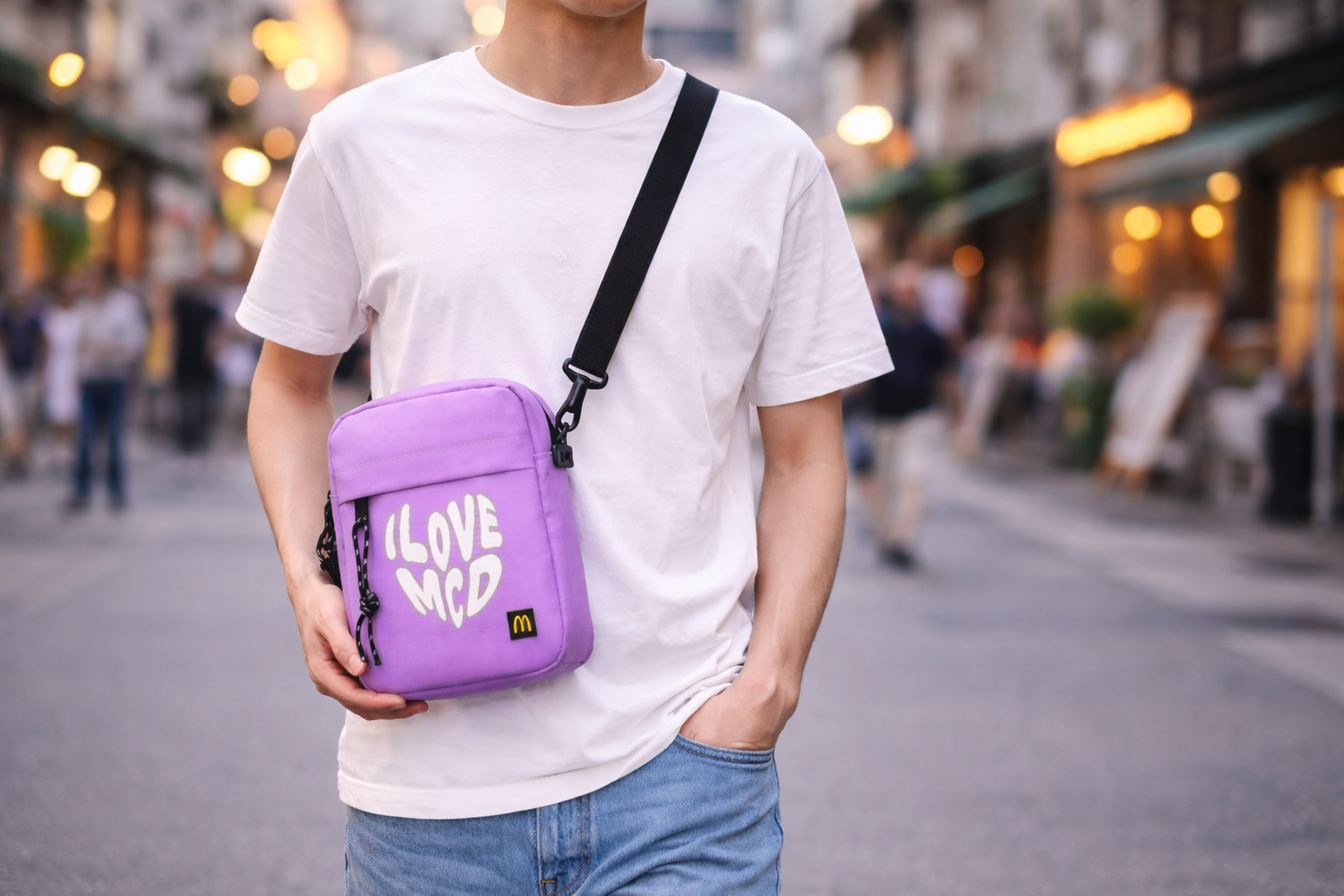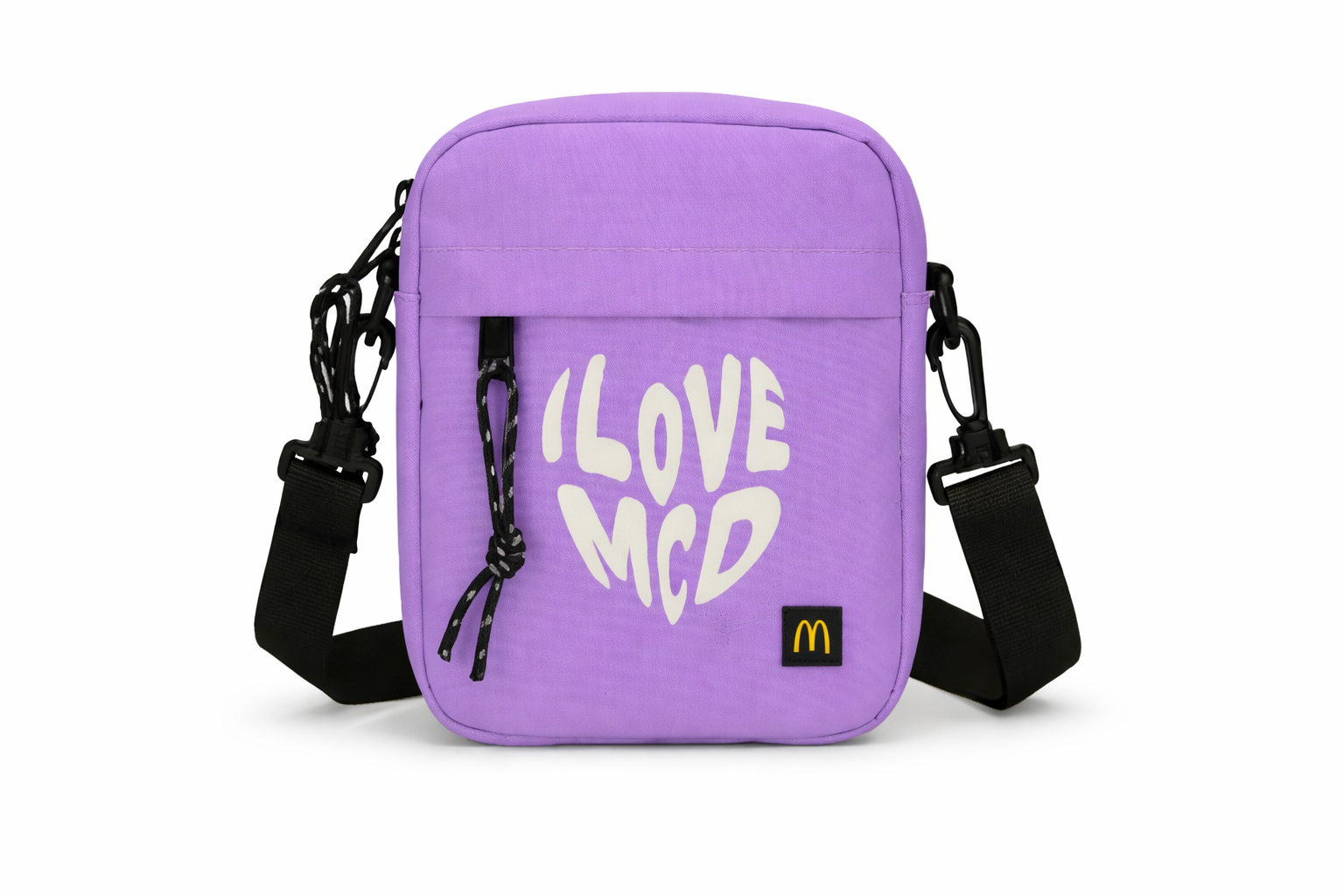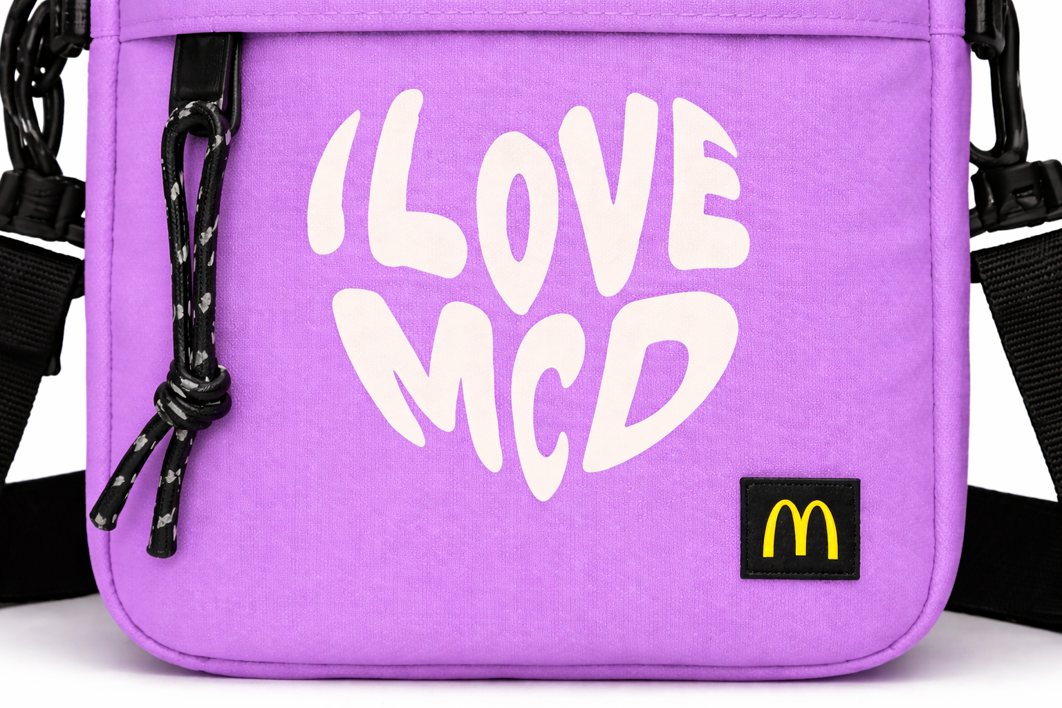 Bolso bandolera en color morado con letras blancas, diseñado para un uso práctico y cómodo en el día a día. Cuenta con interior forrado en poliéster y un tamaño compacto de 21 cm de alto x 16 cm de largo x 5 cm de fuelle, ideal para llevar lo esencial. Además, incorpora bolsillo delantero con cremallera y tirador de goma, además de una correa ajustable de 3 cm de ancho y 140 cm de longitud con hebilla de plástico para mayor confort.