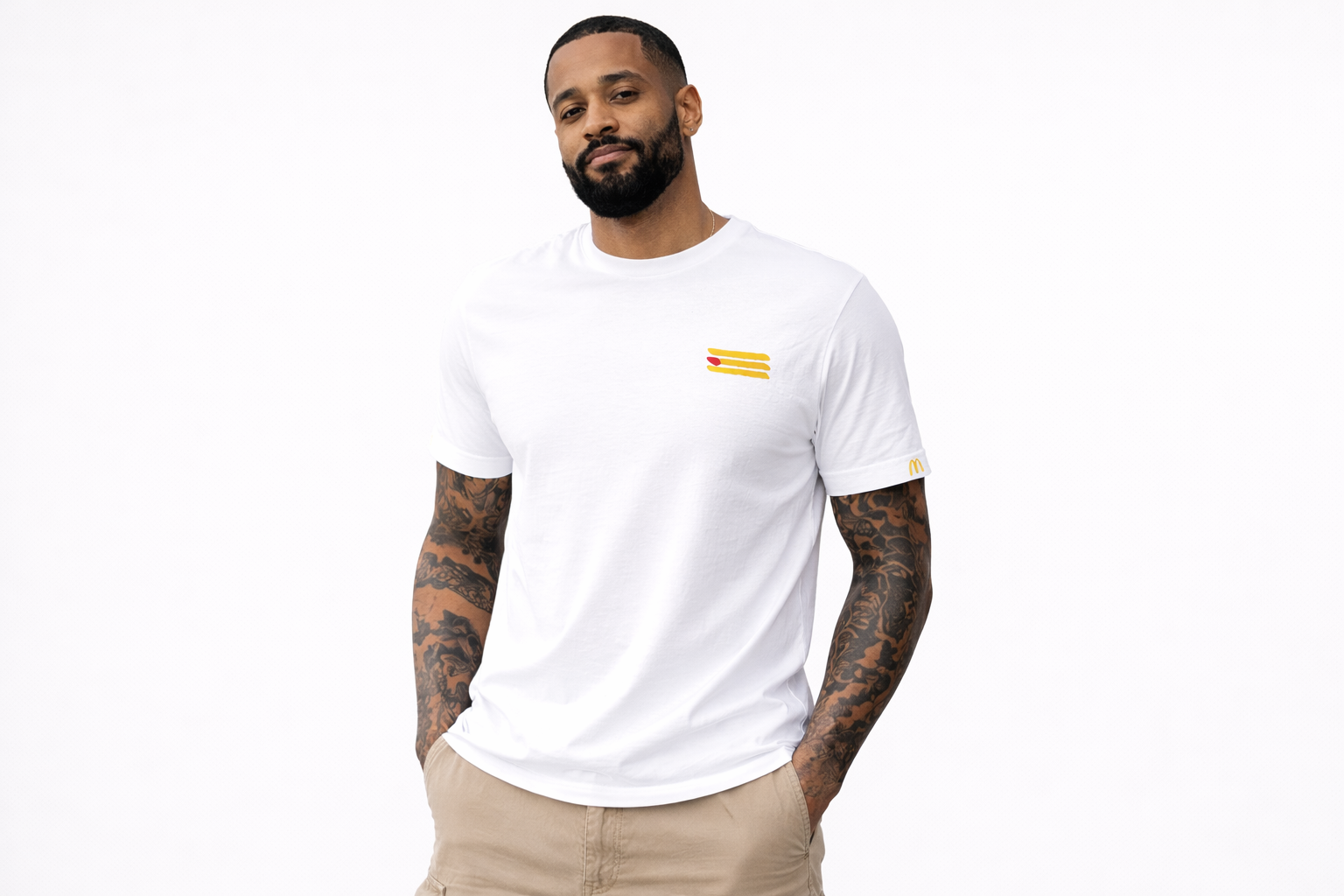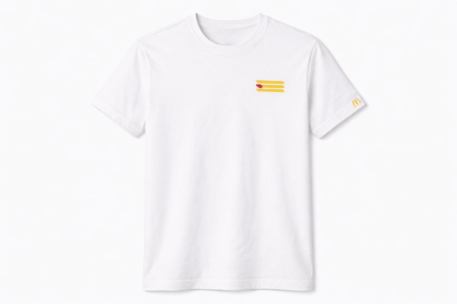 Camiseta 100% algodón (190 g/m²) disponible en tallas S, M, L y XL. Diseño con impresión a todo color en el reverso y logotipo bordado en la manga. Etiqueta interior en el cuello con información de cuidado, texto legal y logotipo impreso en 1 color. Ideal para promociones y branding con alta calidad de impresión y acabados.