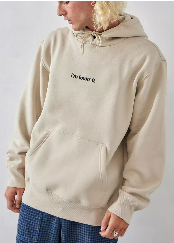 Elevate your casual style with this Ideal Hoodie, crafted from a premium 350gsm fabric blend of 40% cotton for the perfect balance of softness, durability, and comfort. Designed in a neutral beige tone, it features a minimalist “i’m lovin’ it” embroidery at the chest, a spacious front kangaroo pocket, and an adjustable drawstring hood for everyday wearability. Its relaxed fit and heavyweight construction make it ideal for layering during cooler days, while the clean design ensures versatility—perfect for streetwear enthusiasts or anyone who values both comfort and understated style.