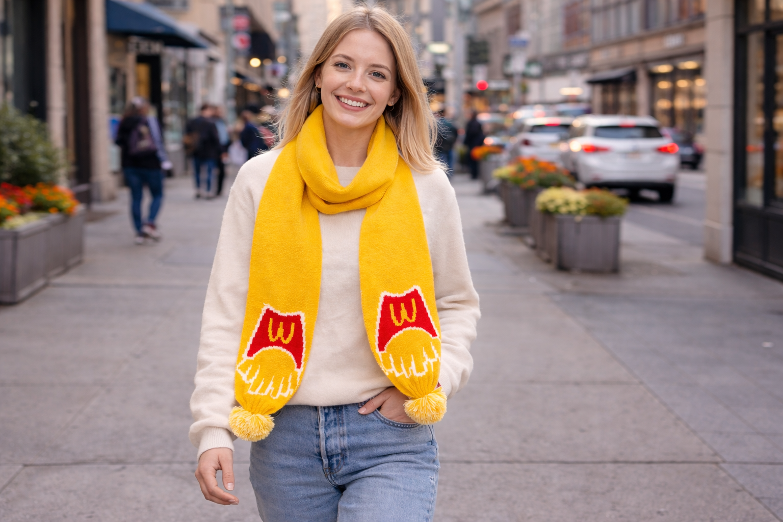 Bufanda de acrílico suave y ligera, con un tamaño aproximado de 144 × 19 cm e incluye dos pompones decorativos. Diseño aplicado en ambos lados, ideal para mantener la visibilidad del branding desde cualquier ángulo. Una opción funcional y atractiva, perfecta como producto promocional para temporadas de frío.