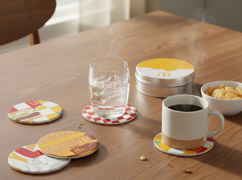 Eleva tu tablero de mesa con este juego premium de 4 posavasos, cada uno con impresión CMYK vibrante en el frente con 4 diseños únicos para adaptarse a cualquier ocasión. Elaborados con una superficie de hojalata duradera y un respaldo de corcho natural, estos posavasos combinan estilo con practicidad, protegiendo las superficies del calor, la humedad y los arañazos mientras añaden un toque de encanto. Embalaje: Cada juego incluye 4 posavasos empacados en una elegante caja de hojalata. Para pedidos al por mayor: 100 juegos por caja (49×40×20 cm), lo que los hace ideales para regalar, vender al por menor o para uso promocional. Material: La construcción de corcho + hojalata de alta calidad garantiza tanto la durabilidad como el respeto al medio ambiente.