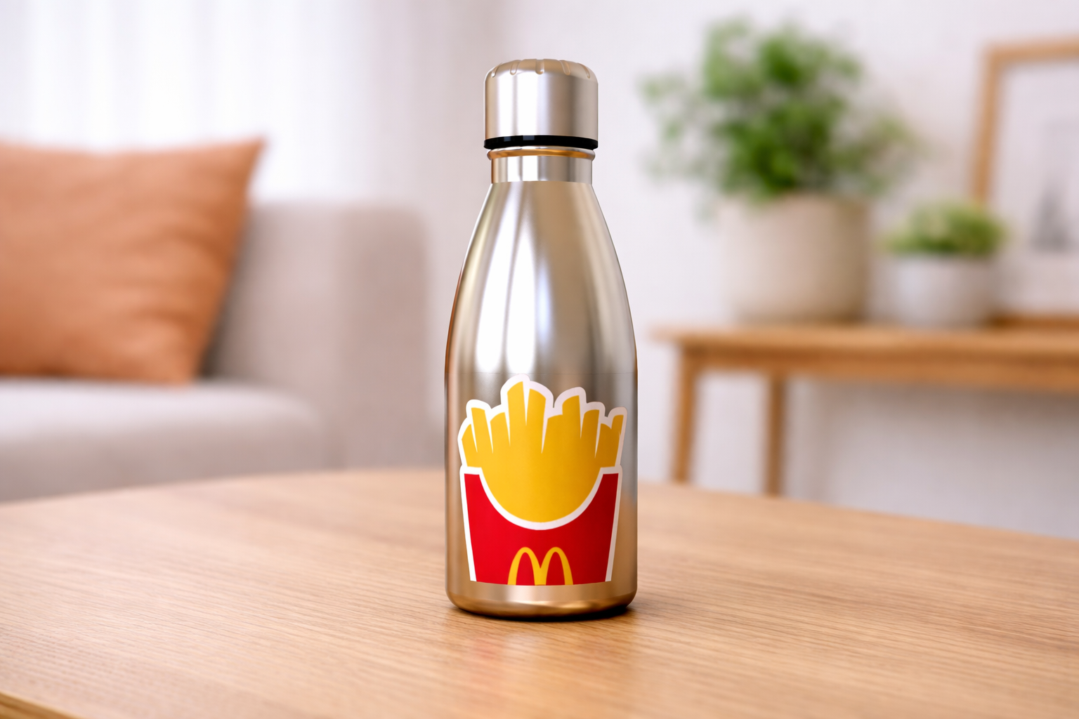 Con un diseño original, elegante y liviano, esta botella es fácil de manejar y perfecta para el uso diario o para llevar de viaje. Su boca estrecha permite beber sin derrames y se adapta a la mayoría de los portavasos, convirtiéndola en una práctica compañera en cualquier desplazamiento. Con una capacidad de 550 ml y un tamaño de 21 x 6,5 cm, está fabricada en acero inoxidable y PP, ofreciendo resistencia y ligereza con un peso de solo 127 g. Disponible en colores verde, amarillo, azul y carne, se presenta en caja de regalo, ideal para obsequios o acciones promocionales.